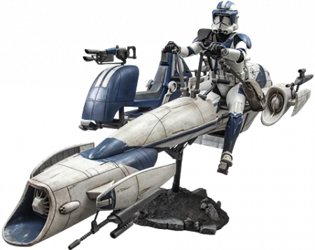 Eine Armee ist nur so effektiv wie ihre Mobilität, und so wurde die Grand Army of the Republic im Verlauf der Klonkriege mit einem immer vielfältigeren und vielseitigeren Fahrzeugpark ausgestattet. Der BARC-Speeder verschaffte den Klontruppen einen größeren Aktionsradius, hohe Geschwindigkeit, Mobilität und Feuerkraft, die dem Fußsoldaten sonst nicht zur Verfügung standen. Der BARC-Speeder ist aggressiver und sperriger als die schlankeren Speeder-Bikes der Jedi und wurde bei Aufklärungs- und Eskortierungsmissionen auf einer Vielzahl von Welten eingesetzt. Sie waren leicht anpassbar, da sie mit Stützstreben versehen werden konnten, um eine Trage oder einen Beiwagen zu tragen.