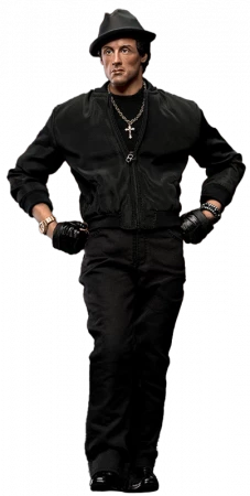 Die Kopfskulptur ist ein authentisches Abbild von Sylvester Stallone als Rocky und hat ein bewegliches Auge. Er wird mit einem abnehmbaren Hut und einem alternativen Haarteil geliefert, so dass er mit oder ohne Hut dargestellt werden kann. Er verwendet einen 30 cm langen, nahtlosen Körper, der speziell für diese Figur entwickelt wurde. Er trägt Rockys Straßenkleidung mit einer schwarzen Jacke, Jeans und einem T-Shirt. Dazu gehören auch eine Halskette mit Kreuz, ein Armband und eine Uhr.